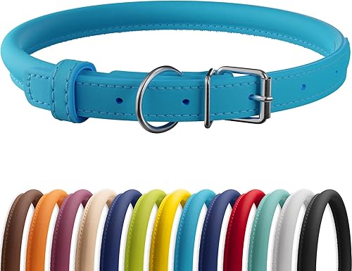 CollarDirect Rolled Leather Dog Collar, Soft Padded Round Puppy Collar, Handmade Genuine Leather Collar Dog Small Large Cat C |